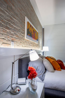 Mantendo parte da marcenaria existente, o projeto buscou nos materiais utilizados, além dos tons quentes da decoração, o aconchego necessário após um dia de trabalho.